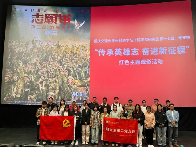 为深入学习贯彻习近平总书记关于弘扬伟大抗美援朝精神的重要论述,扎实推进主题教育走深走实,引导研究生党员从革命历史中汲取奋进力量,材料学院研究生第一、第二党支部于2025年10月17日组织全体党员开展 “铭记英烈事迹,传承红色基因” 主题观影活动,集中观看了抗美援朝题材史诗巨制《志愿军:浴血和平》。影片以震撼人心的叙事、真实鲜活的细节,带领全体党员重温了那段 “边打边谈” 的峥嵘岁月,在光影中感悟英雄精神,...