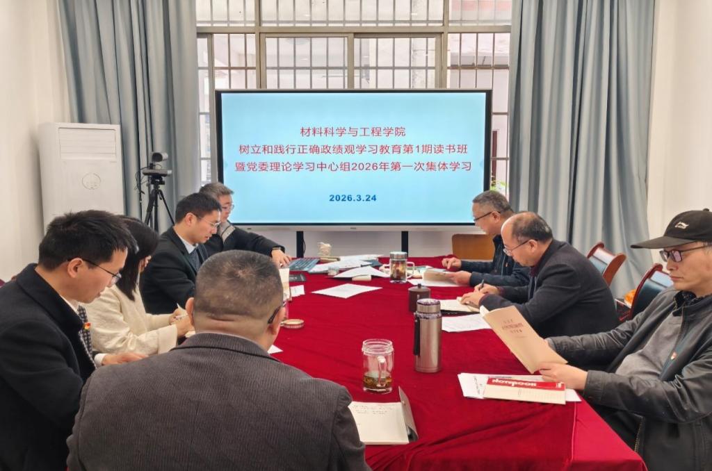 2026年3月24日,重庆交通大学材料科学与工程学院于科学城校区学院会议室召开树立和践行正确政绩观学习教育第1期读书班暨2026年党委理论学习中心组第一次集体学习会,学院党委理论学习中心组全体成员参加学习。