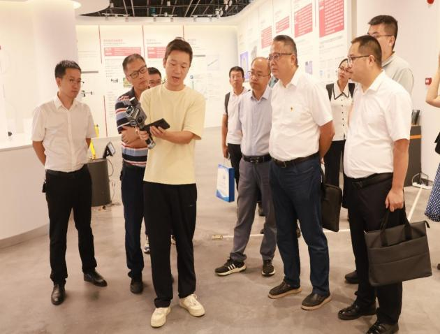 16时,学院中心组抵达重庆智能建造研究院。市场部经理甘庆峰带领大家参观了研究院的展厅和实验现场,并介绍了研究院的成立背景、发展历程、技术突破与应用案例。随后在研究院会议室,双方就科技成果转化落地、指导学生创新创业等议题展开了讨论。座谈结束后,学院提议研究院赴校举办创新创业主题讲座,分享成功经验,激发学生创新思维,提升实践能力。