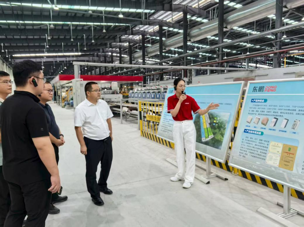 在东鹏公司相关负责人的陪同下,材料科学与工程学院副院长赵毅教授带队参观了东鹏三期智能工厂与文化展览馆。参观路线涵盖原料车间、球磨-喷雾塔工序、三期压机入口、参观通道区域以及文化展览馆和瓷砖物化性能演示区。通过实地走访,学院教师团队对东鹏智能陶瓷生产线的自动化程度、节能环保措施和产品质量控制有了直观了解,为后续技术合作奠定了实践认知基础。