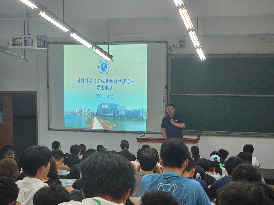 2025年10月18日,材料科学与工程学院材料科学与工程系、能源材料工程系在A01237教室联合举办2025级材料类新生入学教育暨专业认知讲座。活动由材料科学与工程系副主任曾晟与能源材料工程系主任黄炎昊主讲,系统解读了学院专业布局、培养方案、成长路径与竞赛科研,帮助新生尽快完成角色转换、明确发展方向。