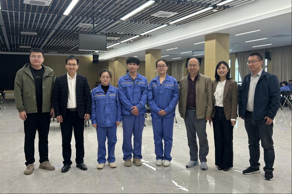 10月28日上午,王俊杰一行在舟山市人社局人才处梅倩倩主任、舟山市定海区人社局人才公共服务中心刘蓉主任陪同下,来到荣盛新材料(舟山)有限公司访企拓岗和看望毕业生校友。公司生产副总经理辛华、行政部高级经理全春华、人事主管崔佳和新入职员工(学院2025届毕业硕士生生张森、本科生余楠)参与调研座谈。交流中,企业领导对引进的材料学院毕业生的工作表现给予充分肯定,希望学院推荐更多的优秀毕业生加入公司建功立业。座谈会后调研组看望了在该公司工作的学院毕业生校友,实地参观了公司实操大厅、食堂、宿舍等,勉励和鼓励同学们珍惜公司提供的优良工作和生活环境,踏实认真工作。