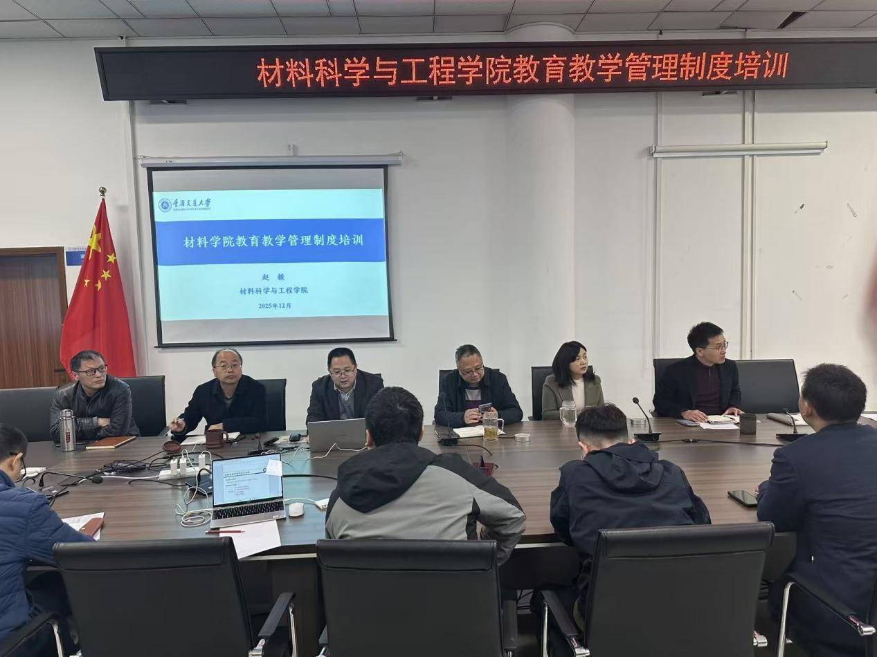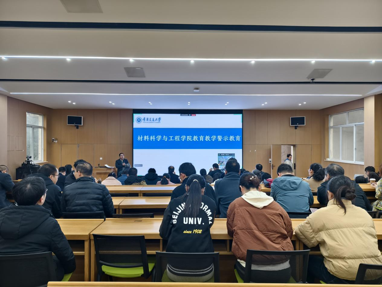 为强化教育教学规范、筑牢师德师风底线,材料科学与工程学院于2025年12月11日~12日,在科学城校区材料学院会议室及南岸校区第一教学楼301报告厅,组织开展了教育教学管理培训与警示教育。材料学院党委书记周平、院长王俊杰、正处级组织员韩正清、党委副书记黄丽君、副院长郭鹏、副处级组织员李力以及全院教职工参加了本次培训与警示教育。会议由副院长赵毅主持并主讲。