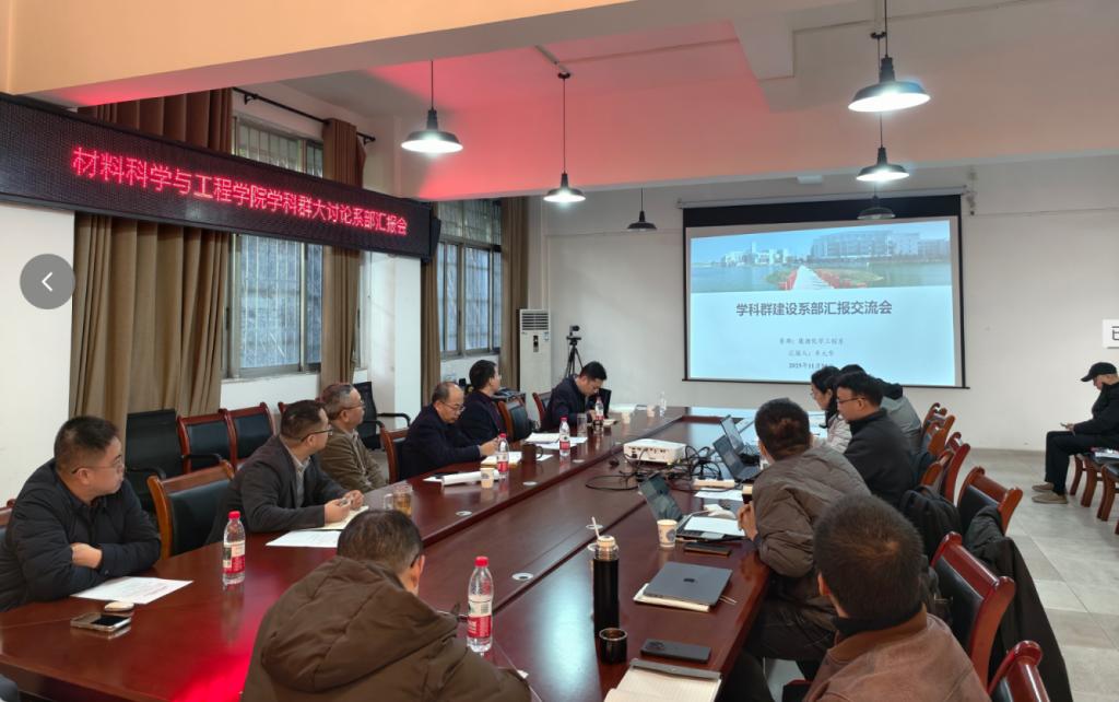 11月25日下午,材料科学与工程学院在南岸校区学院会议室召开学科群建设专题研讨会,扎实推进学校学科群建设大讨论活动第一阶段学院内部研讨工作。原校党委副书记郑旭旭出席会议。学院院长王俊杰,副院长郭鹏、赵毅,各系部主任、副主任参加会议。交通基础设施学科群负责人、土木工程学院院长张学富,河海学院港航系主任张鹏受邀到会交流,会议由郭鹏副院长主持。