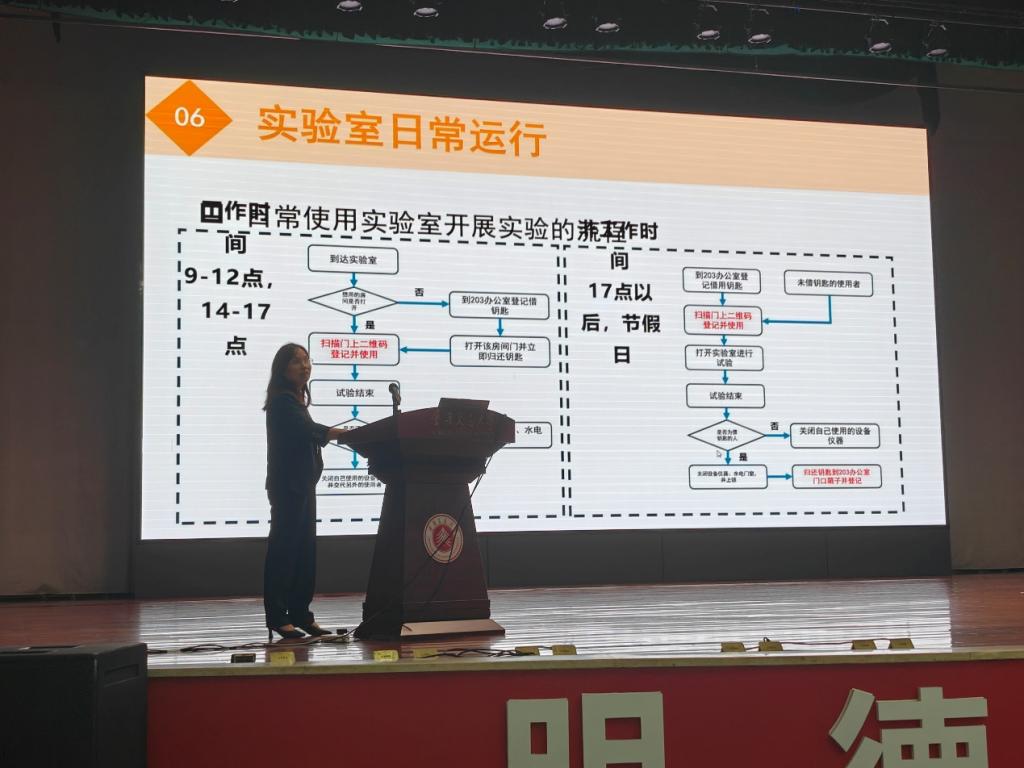 针对学生关心的“仪器设备使用”、“危化品申领”等高频问题,培训设置了专项答疑环节。明确“先培训后使用”“故障立即上报”“危化品规范申领”等操作红线,强化了学生的规则意识与责任担当。