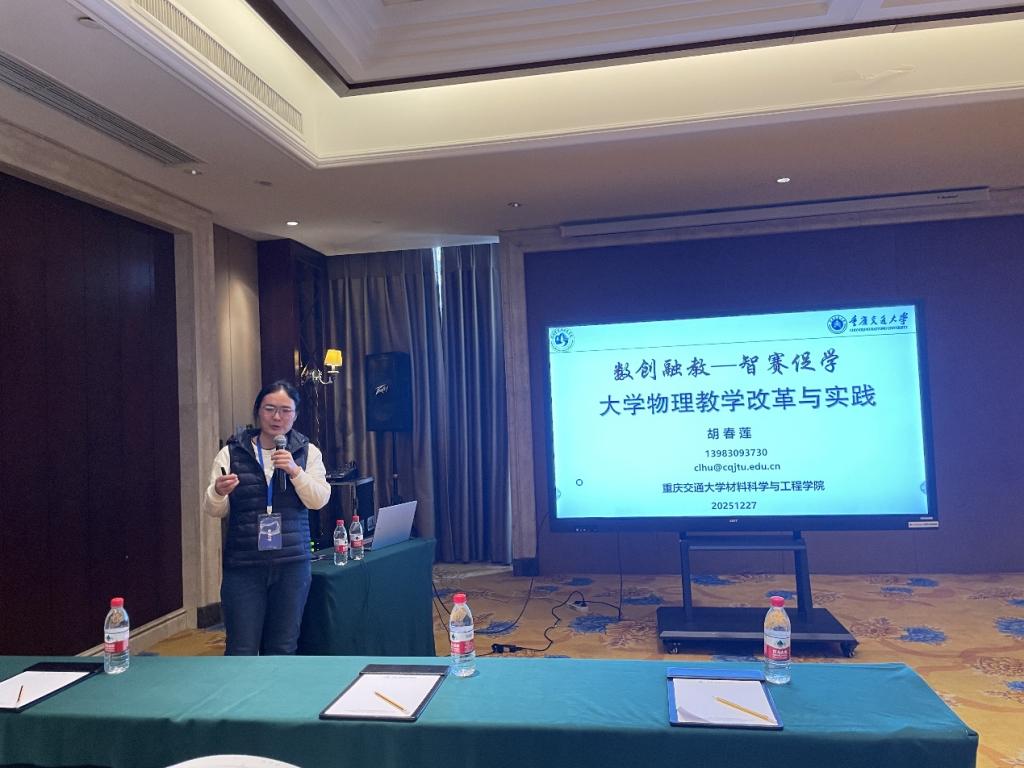 会议期间,课程组教师积极参与各项议程,与来自全市各高校的专家学者深入交流物理教学改革经验。在专题报告环节,胡春莲教授围绕“数创融教,智赛促学”这一主题,深入阐述了如何通过数字化创新融合教学方式,以智能化竞赛平台激发学生学习兴趣,提升大学物理课程教学效果。报告介绍了材料科学与工程学院在物理课程建设中运用现代信息技术、构建智慧教学环境的实践经验,以及通过组织各类物理竞赛活动培养学生创新能力的具体做法,引起了与会代表的广泛关注和热烈讨论。