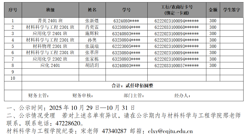 材料科学与工程学院2025年明德奖学金推荐学生名单公示