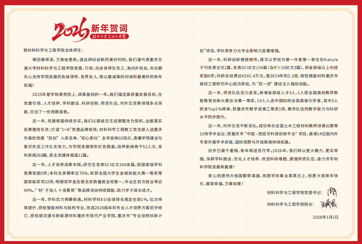 材料科学与工程学院2026年新年贺词