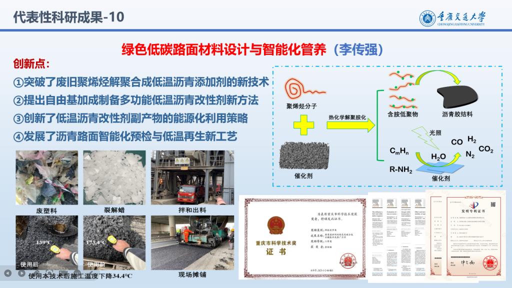 代表性成果:绿色低碳路面材料设计与智能化管养(李传强)