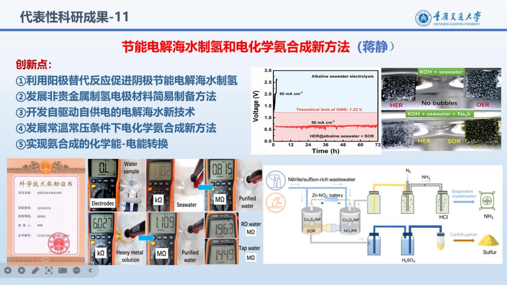 代表性成果:节能电解海水制氢和电化学氨合成新方法(蒋静)