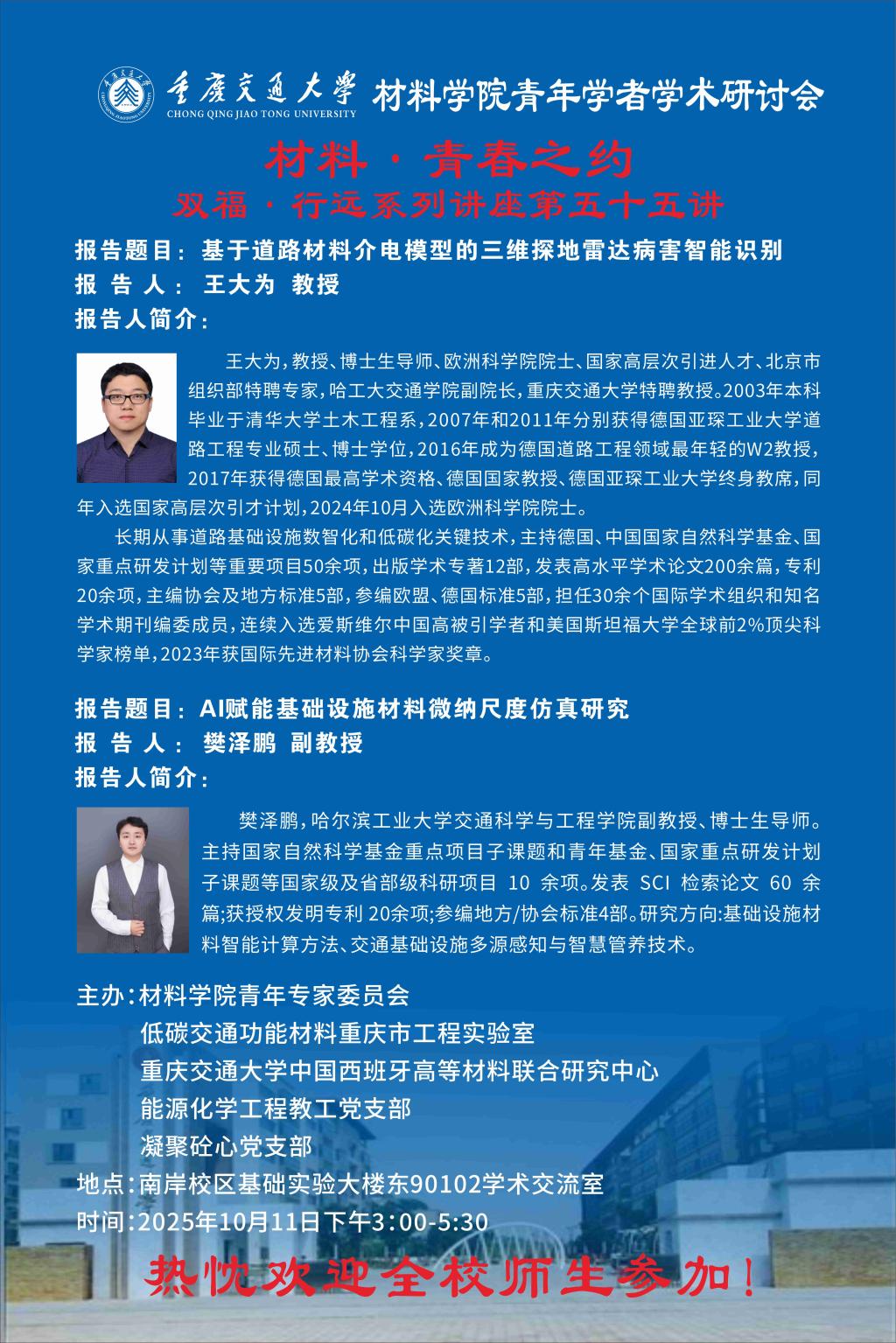 材料·青春之约系列讲座第五十五讲:基于道路材料介电模型的三维探地雷达病害智能识别、AI赋能基础设施材料微纳尺度仿真研究