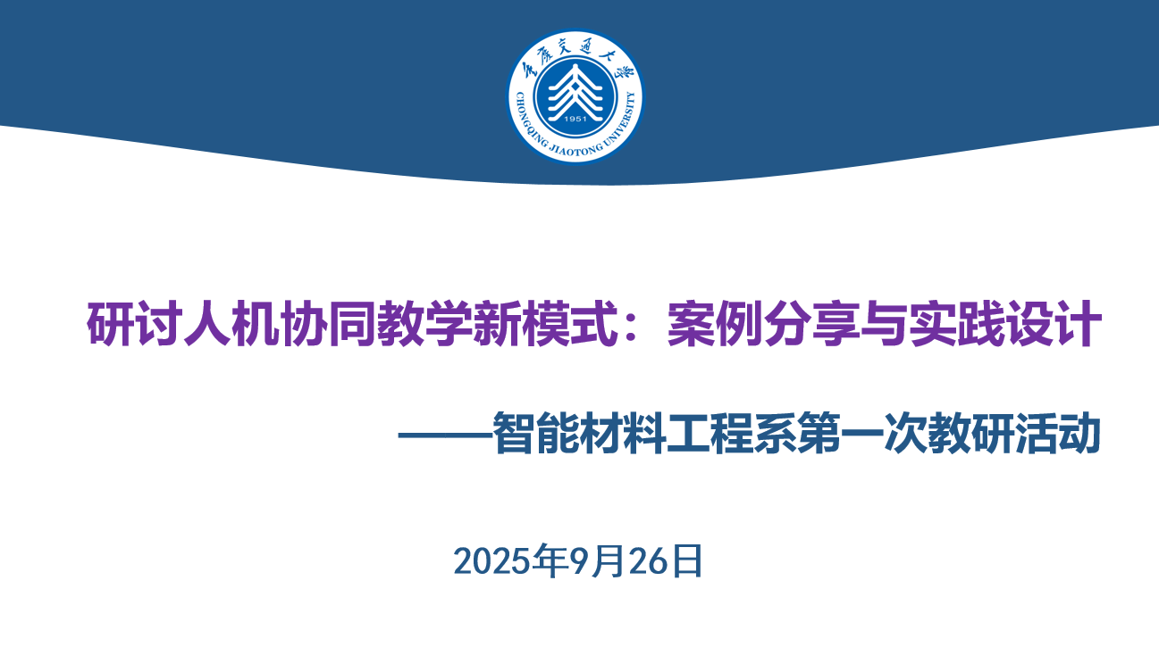 为积极响应国家关于人工智能与教育深度融合的战略部署,9月26日,智能材料工程系在南岸校区材料学院会议室组织召开了以研讨“AI+教育”新路径,探索人机协同教学新模式:案例分享与实践设计为主题的新学期首次教研活动。本次活动由系副主任赵楠主持,赵毅副院长及全系教师齐聚一堂,共同学习前沿政策,交流实践经验,谋划智能材料领域人才培养的创新蓝图。